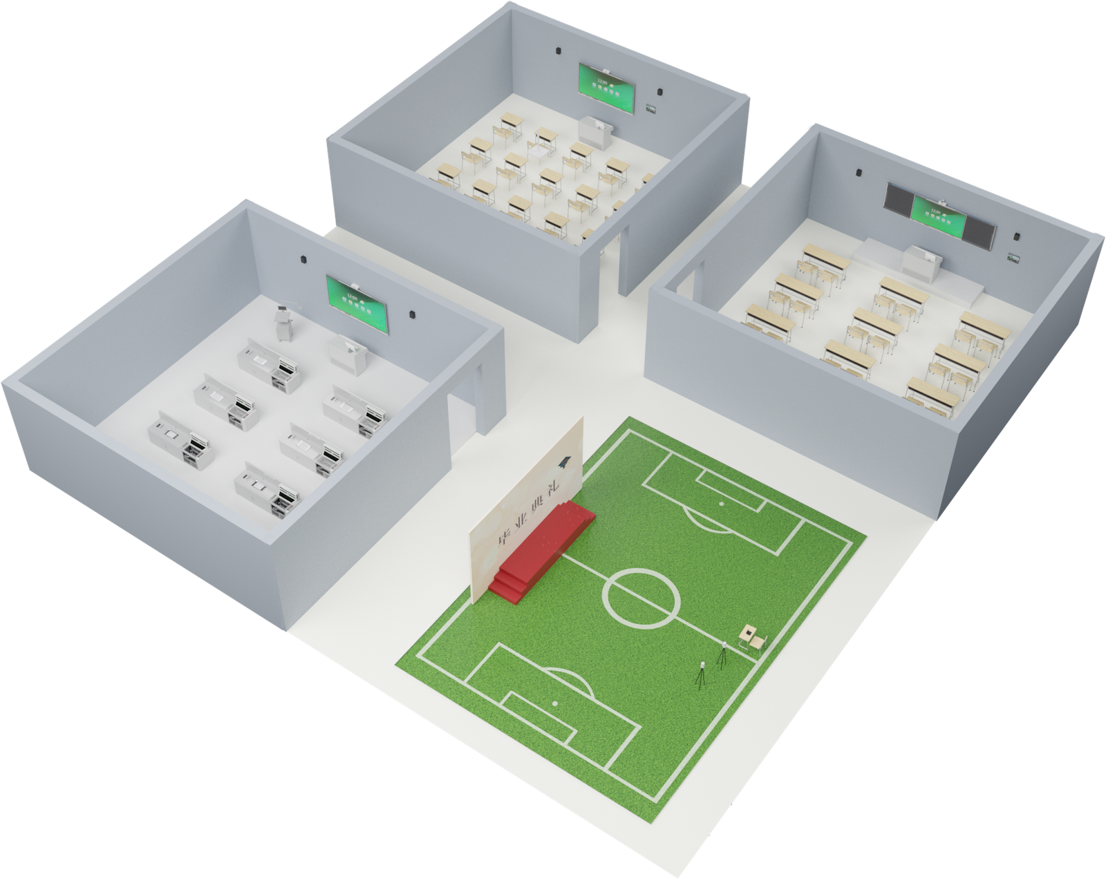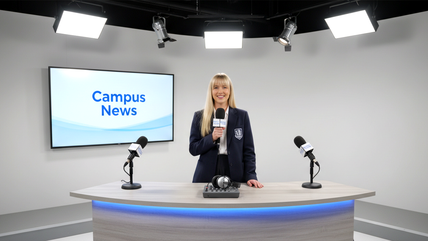 Student anchors can broadcast in front of virtual charts, present course content vividly, and visualize data in real time.