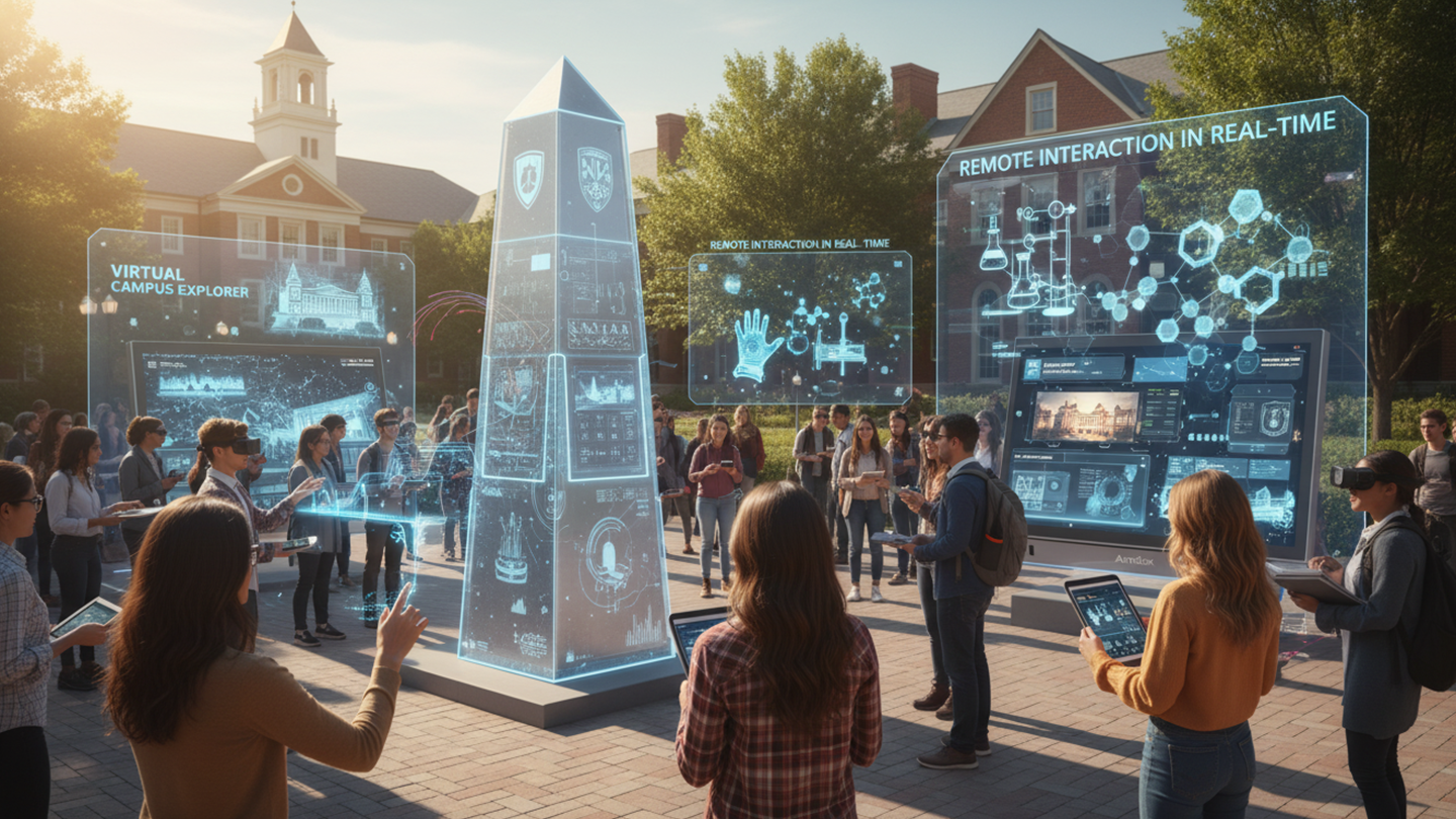 Showcase campus landmarks and tech elements. With AR, audiences can remotely control demos. Virtual campus or training scenes enhance storytelling.