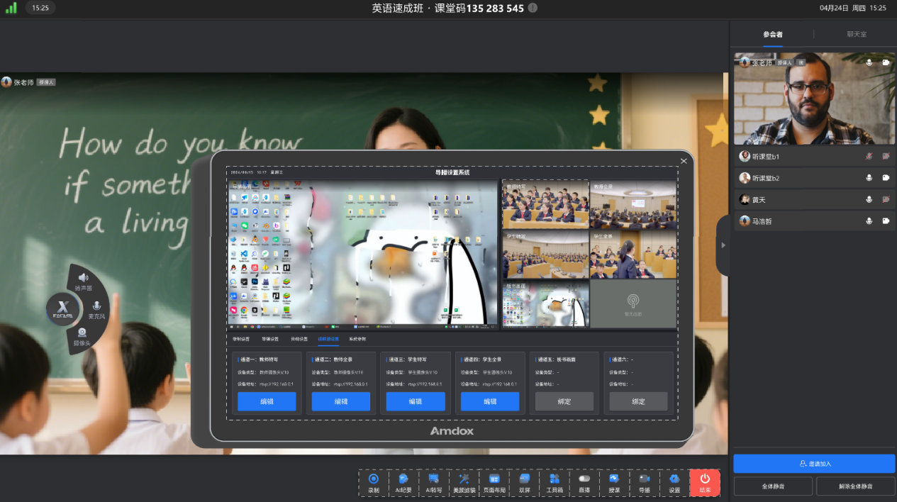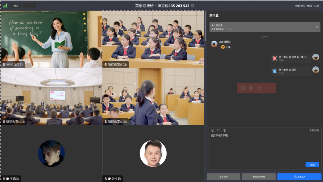 It supports the seamless integration of online and offline hybrid teaching for students, providing stable and smooth audio-visual experience,collaborative tools, as well as chat, question and answer interactions.